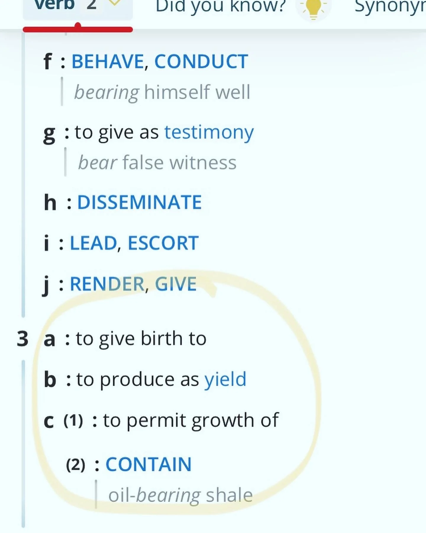 Bear - as in “give birth to” - “carry” - “hold” - “contain” - “sustain” - “suffer” - “support” - “accept” - “give”